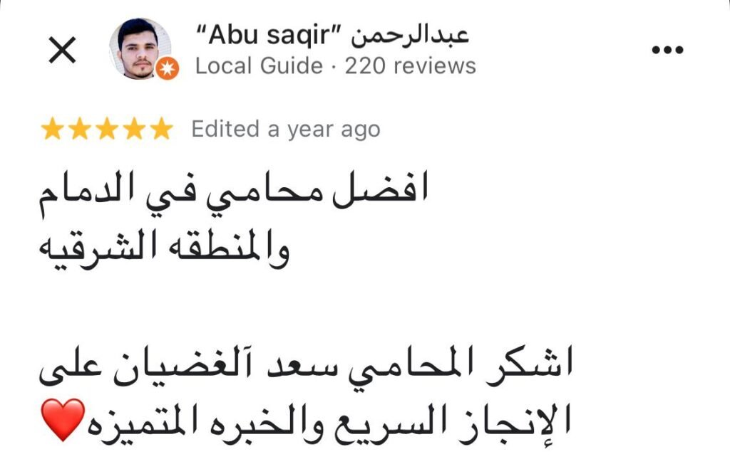 الخبرة لا تُقاس بالكلام، بل بشهادات من خاضوا التجربة فعليًا مع فريق مكتب المحامي سعد بن عبد الله الغضيان، وجهة يعتمد عليها كل من يبحث عن أفضل محامي قضايا مخدرات في الدمام.